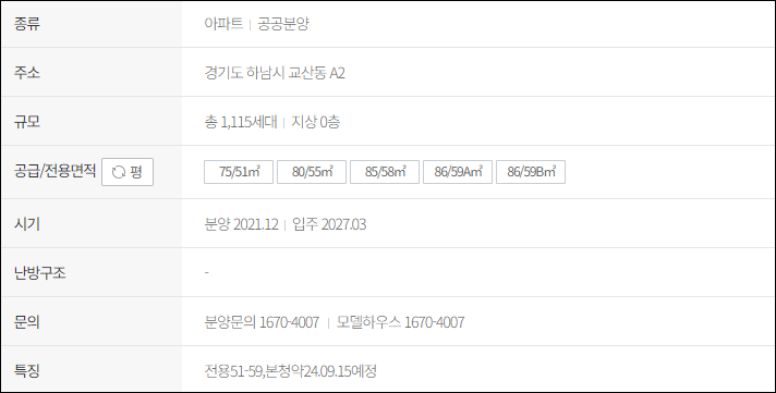 - 하남교산A2 사전청약 - 교산동, 1,115세대, 21년 12월 분양