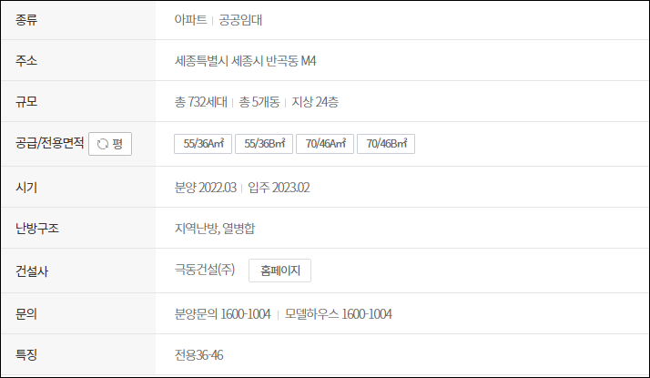 - 행정중심복합도시 4-1 M4 국민임대 (732가구, 반곡동, 3월 분양)